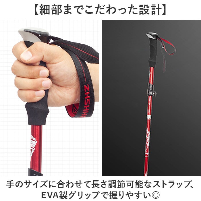 | 商品説明 | 【山歩きを快適に】折りたたみ式トレッキングポール♪【2重セーフティロック構造】レバーロック&隠しのステンレスボタン式の2重ロック機能で安全・快適に使える!【細部までこだわった設計】手のサイズに合わせて長さ調節可能なストラップ、EVA製グリップで握りやすい◎【衝撃に強いABS素材を使用】衝撃に強く、落としても安心。軽くて丈夫だから、気兼ねなく使える。【伸縮調整が可能】身長に合わせて長さ調整できる〇【持ち運びに最適】軽量・コンパクトに折りたためる◎ |