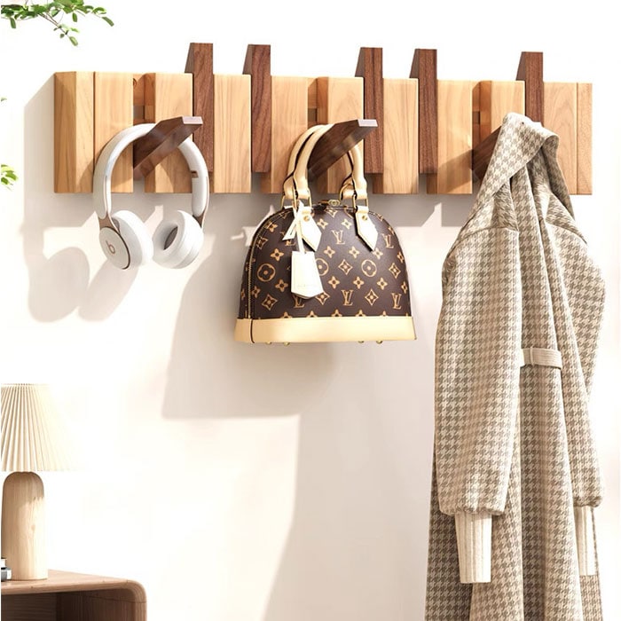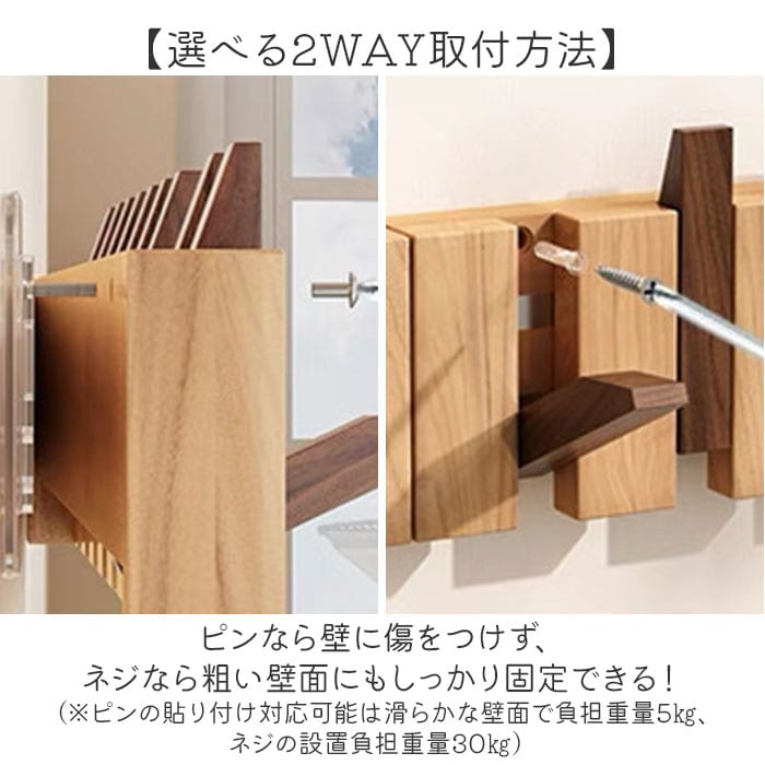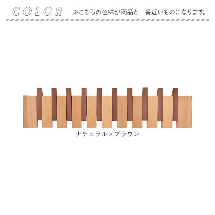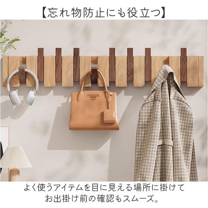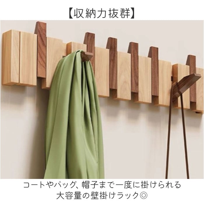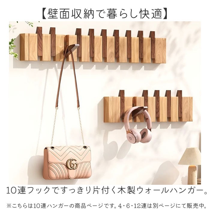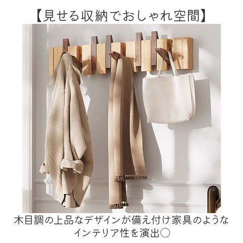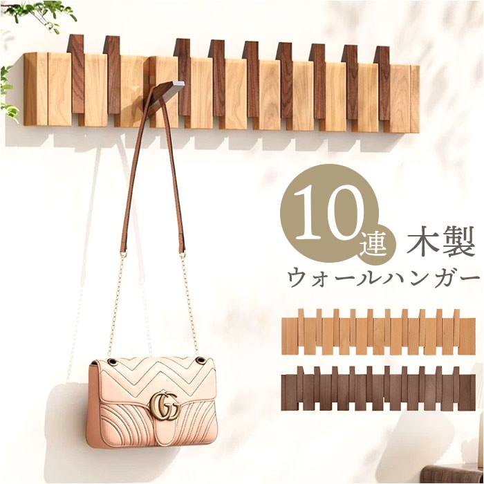 | 商品説明 | 【壁面収納で暮らし快適】10連フックですっきり片付く木製ウォールハンガー。【収納力抜群】コートやバッグ、帽子まで一度に掛けられる大容量の壁掛けラック◎【省スペース設計が魅力】玄関や廊下のわずかな壁面を活用して収納スペースを確保できる♪【見せる収納でおしゃれ空間】木目調の上品なデザインが備え付け家具のようなインテリア性を演出〇【選べる2WAY取付方法】ピンなら壁に傷をつけず、ネジなら粗い壁面にもしっかり固定できる!(※ピンの貼り付け対応可能は滑らかな壁面で壁紙には使用できません。負担重量5kg、ネジの設置負担重量30kg)【忘れ物防止にも役立つ】よく使うアイテムを目に見える場所に掛けてお出掛け前の確認もスムーズ。 |