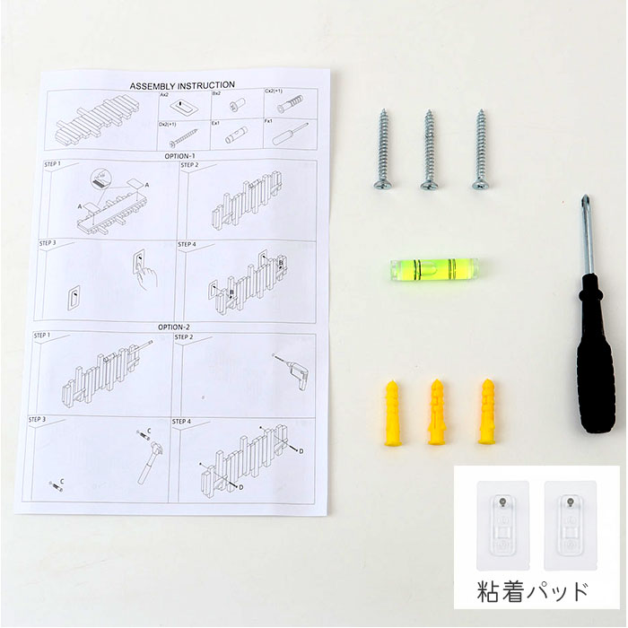 | 注意点 | [付属品]粘着シール x 3個、プラスドライバー x 1本、ネジ x 3本※拡張プラグ x 3本、水平器 x 1個海外輸入品のため、商品によってはパッケージや説明書が、英語や中国語表記となっている場合があります。商品を安価でご提供させていただくため、輸入時のパッケージのままでのお届けとなります。予めご了承くださいませ。海外輸入品のため、パッケージに破れ、傷やへこみがある場合がございます。本体には問題ございませんので、予めご了承くださいませ。商品の写真はできる限り実物のお色に近づけるように加工しておりますが、お使いのモニター設定、お部屋の照明などにより、実際の商品と異なる場合がございます。商品や個体差などにより、表記と若干異なる場合がございますが、予めご了承くださいませ。採寸方法の違いにより、多少の誤差がある場合がございます。こちらの商品本体、及び商品についている印字やタグに関しては、海外メーカー独自のサイズ情報や表記になります。実際には、当社にて日本向けに正しい情報をページに掲載させて頂いております。 |