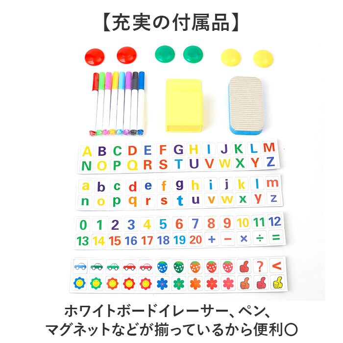 | 注意点 | [付属品]カラーペン、イレイサー、アルファベットマグネット、カラーマグネット、取付け用粘着テープ、取付け用ピン海外輸入品のため、商品によってはパッケージや説明書が、英語や中国語表記となっている場合があります。商品を安価でご提供させていただくため、輸入時のパッケージのままでのお届けとなります。予めご了承くださいませ。海外輸入品のため、パッケージに破れ、傷やへこみがある場合がございます。本体には問題ございませんので、予めご了承くださいませ。商品の写真はできる限り実物のお色に近づけるように加工しておりますが、お使いのモニター設定、お部屋の照明などにより、実際の商品と異なる場合がございます。商品や個体差などにより、表記と若干異なる場合がございますが、予めご了承くださいませ。採寸方法の違いにより、多少の誤差がある場合がございます。こちらの商品本体、及び商品についている印字やタグに関しては、海外メーカー独自のサイズ情報や表記になります。実際には、当社にて日本向けに正しい情報をページに掲載させて頂いております。 |