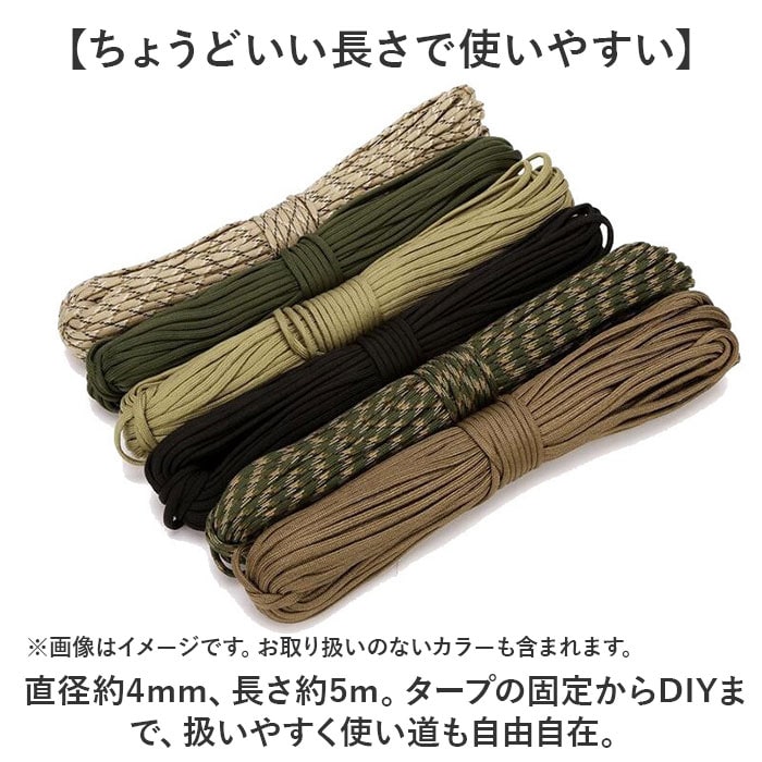 | 商品説明 | 【アウトドアの頼れる一本!】キャンプや登山、防災用としても活躍!「パラコード 5m 7芯 4mm」が登場。【7芯仕様の高密度構造】内部には7本の芯入り。しっかりとした作りで、安心感のある使い心地。【耐久性・耐摩耗性に優れた仕立て】岩や木との摩擦にも負けない強さ!長く使えるタフな設計。【ちょうどいい長さで使いやすい】直径約4mm、長さ約5m。タープの固定からDIYまで、扱いやすく使い道も自由自在。【シーンを選ばず活躍する万能性】アウトドアはもちろん、ガーデニングや日常使いにもおすすめなマルチアイテム。【選べる楽しさ、豊富なカラバリ】アウトドアにも日常にもなじむ多彩なカラー。好みや用途で選べる楽しさも魅力。 |