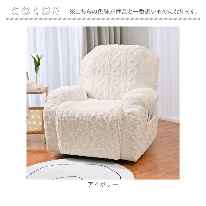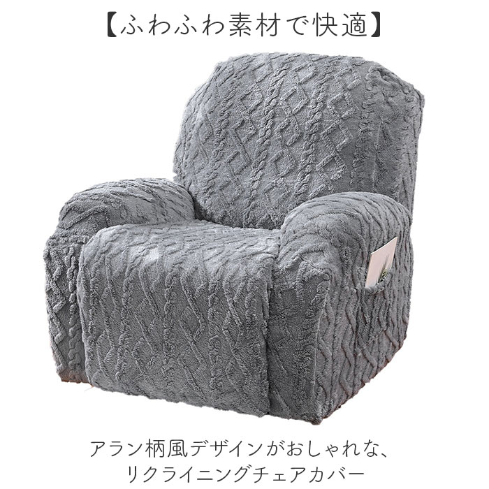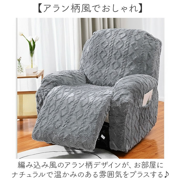 | 商品説明 | 【ふわふわ素材で快適】アラン柄風デザインがおしゃれな、リクライニングチェアカバー【4つに分かれて装着簡単】背もたれ、座面、肘掛け2つの4パーツ構成だから、取り付けも取り外しもスムーズな便利設計◎【ふわふわの心地よさ】柔らかくふわふわとした素材で、座り心地をグッと快適にしてくれるリラックスタイムの必需品。【便利なポケット付き】リモコンやスマホをサッと収納できるポケットが付いているから、くつろぎ時間がもっと便利に〇【アラン柄風でおしゃれ】編み込み風のアラン柄デザインが、お部屋にナチュラルで温かみのある雰囲気をプラスする♪【伸縮性のある生地】ほどよく伸びるから、チェアにぴったりフィットして美しく仕上がる! |
