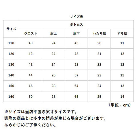 | サイズ | [キッズ] ・110CM ・120CM ・130CM ・140CM ・150CM ・160CM ※サイズについて詳細は、商品画像の中にあるサイズ表をご覧くださいませ。 |