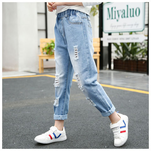 デニムダメージジーンズ キッズ x1908【ライトブルー】【120CM】