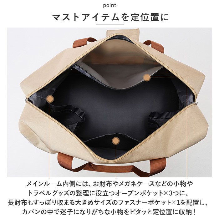 | 注意点 | 【キャリーオン機能搭載】バッグ背面には、スーツケースのハンドルにスマートにセットできるキャリーオンベルト付き。汗ばむ季節に脱いだアウターは、フロントのゴムバンドに括っておくと旅行がより身軽に楽しめる!【多彩なシーンでお洒落に】旅行用ボストンとしてだけでなくフィットネスジムや学生さんの部活用バッグ、荷物が多めになりがちな子育て中の方用のママバッグなど、様々なシーンで大活躍。【ポケット仕様】[メインルーム内部]オープンポケット×3、はっ水機能付きファスナーポケット×1[バッグ底面]ファスナー式シューズ専用ルーム[前面]ミニファスナーポケット×1海外輸入品のため、商品によってはパッケージや説明書が、英語や中国語表記となっている場合があります。商品を安価でご提供させていただくため、輸入時のパッケージのままでのお届けとなります。予めご了承くださいませ。商品の写真はできる限り実物のお色に近づけるように加工しておりますが、お使いのモニター設定、お部屋の照明などにより、実際の商品と異なる場合がございます。商品の生産時期などにより、付属品(ボタン、ファスナー、タグ、パッケージなど)のデザインや仕様の一部が変更になる場合がございますが、予めご了承くださいませ。商品や個体差などにより、表記と若干異なる場合がございますが、予めご了承くださいませ。輸入品のため、糸の継ぎ目や縫製等が甘い部分、糊跡等が生じる場合がございますが、予めご了承くださいませ。生地の特性上、やや匂いが強く感じられるものもございます。数日のご使用や陰干しなどで気になる匂いはほとんど感じられなくなります。お手入れなどはタグなどの表記をご確認ください。配送の方法によっては、商品に多少のシワ等ができる場合がございますが、出来る限りお客様にリーズナブルな価格帯でご提供するためです。ご了承くださいませ。採寸方法の違いにより、多少の誤差がある場合がございます。 |