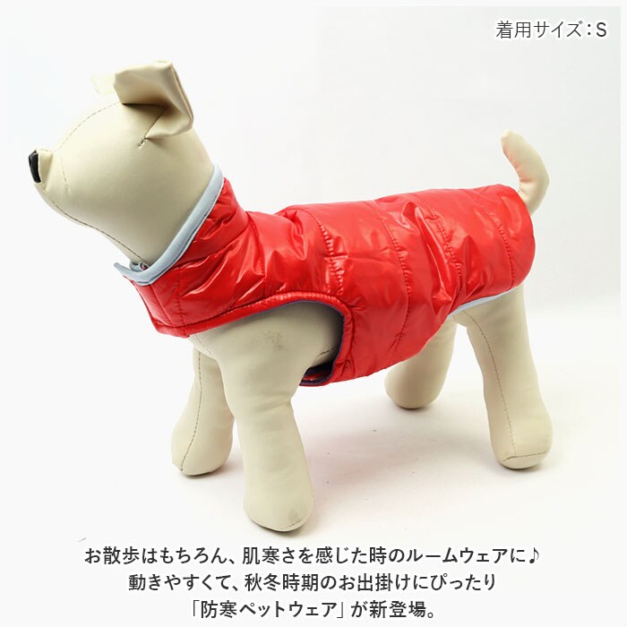 | 商品説明 | お散歩はもちろん、肌寒さを感じた時のルームウェアに♪動きやすくて、秋冬時期のお出掛けにぴったり「防寒ペットウェア」が新登場。【これ一枚で、防寒対策は万全】スキーウェアのように色鮮やかなジャケットの内側には、着ぶくれしない程よい厚さに中綿を充填。風の冷たい季節のお散歩もほっこり暖かなワンちゃん用ベスト。【面ファスナーでラクラク着せ替え】広げたウェアをワンちゃんの背中にふわっと被せたら、首回りとお腹部分の面ファスナーテープを2ヶ所ペタッと留めるだけで装着がとっても簡単!前脚を通す手間がないので、お散歩前の準備がとっても楽ちん。【足が短めなワンちゃんにも】よちよち歩く姿が可愛い♪コーギーやフレンチブルドッグなど手足の短めなワンちゃんでもピッタリ着れる、お袖のないベストデザイン。【リードを付けてお散歩にGO!】背中の首の付け根部分のリードホールを使用すれば、首輪のDカンとリードのフックをスムーズに接続可能。お散歩が待ちきれないワンちゃんにぴったり!【おトイレの時も安心】お腹まわりやお尻は大きく開いたデザインなので、おトイレでウェアの生地を汚す心配がないのも嬉しいポイント!【水滴を弾くはっ水生地】ぐずついた小雨の日や、小雪の散らつく日でも水滴をパッと弾いて安心。どんなお天気の日もいっぱい歩きたいワンちゃんに最適。【ピッタリサイズをチョイス!】XSサイズからXLサイズまでの5つのサイズから、ぴったりサイズがチョイス可能!超小型犬から、バスト56cm程度までの中型のワンちゃんに最適なサイズ感。小さなサイズはネコちゃんにもオススメ。【お散歩が楽しくなるデザイン】冬の散歩道に明るく映えるベーシックカラー&パステルカラーのバリエーション。飼い主さんの秋冬ファッションに合わせて、コーディネートも自在♪【ルームウェアにも◎】肌寒さが気になる季節のお散歩用ウェアとしてはもちろん、ルームウェアやパジャマとして、朝晩の冷え込み対策にもオススメ。 |