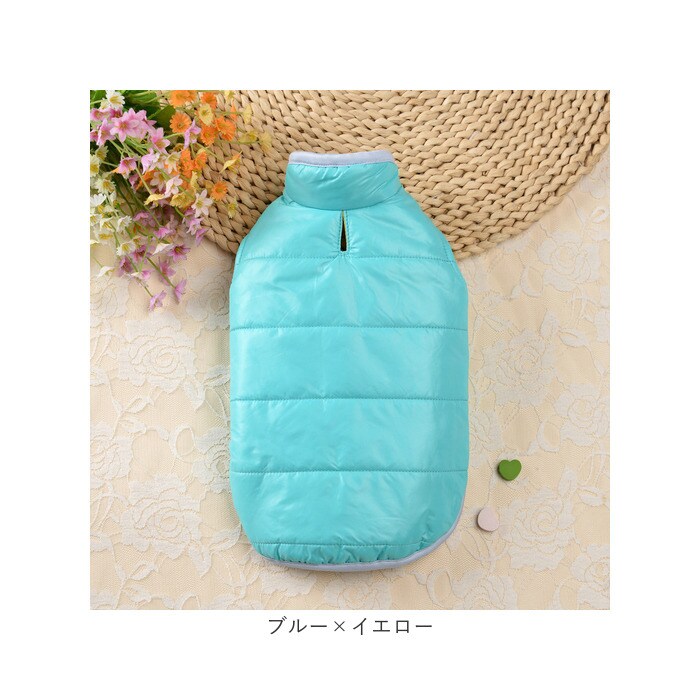 ペットウェア 犬服 猫 秋 冬 防寒 かわいい xqcw026【ブルー×イエロー】【L】