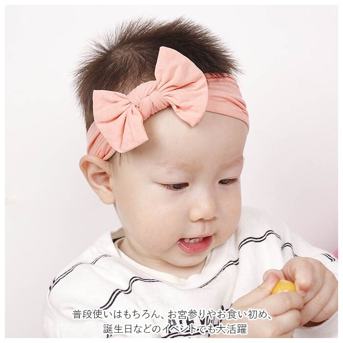 | 商品説明 | リボンがとってもキュートな、子供用ヘアバンド♪柔らかく伸縮性のある素材を使用。幅広バンドで頭を締め付けず、心地よくフィット。お子さまのお肌に気持ちいい、さらりとした生地感。新生児から2歳頃まで長く使えるのが嬉しい。普段使いはもちろん、お宮参りやお食い初め、誕生日などのイベントでも大活躍。お洋服に合わせて選べる豊富なカラーバリエーション。お気に入りを見つけて♪(※入荷時期により色合いが多少異なる場合がございます。予めご了承の上、お買い求めください。) |