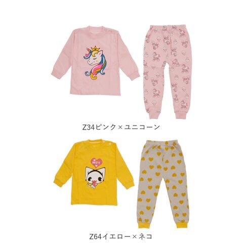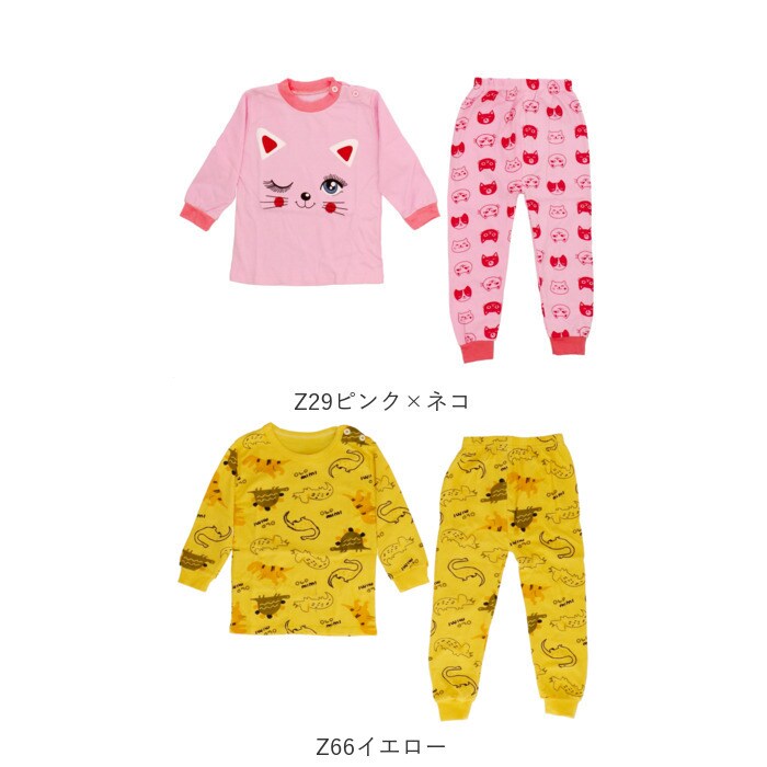 パジャマ キッズ 赤ちゃん 上下セット y033【Z64イエロー×ネコ】【80CM】