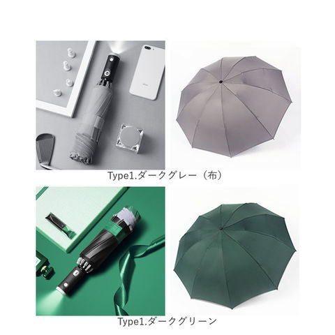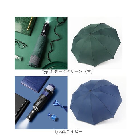 LEDライト付 自動開閉 折りたたみ傘 yaledfumb8427【Type2.ダークグリーン】