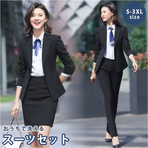レディースパンツスーツセット yana868【ブラック(スカート)】【Sサイズ】