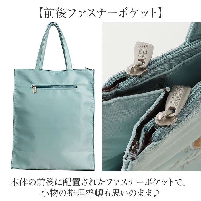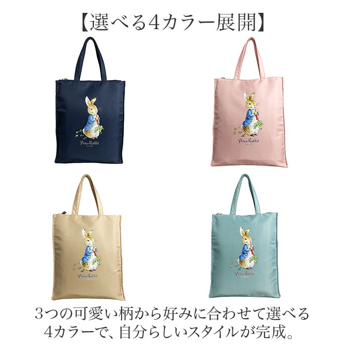| 商品説明 | 【絵本から飛び出した可愛さ】ピーターラビットと一緒にお出かけできるトート【A4対応の収納力】A4サイズがすっぽり入る縦型設計で、書類も荷物もしっかり収まる使いやすさ◎【前後ファスナーポケット】本体の前後に配置されたファスナーポケットで、小物の整理整頓も思いのまま♪【撥水加工で安心仕様】急な雨や汚れもサッと拭き取れる撥水生地だから、いつでも清潔に保てる〇【選べる4カラー展開】3つの可愛い柄から好みに合わせて選べる4カラーで、自分らしいスタイルが完成。【絵本の世界観デザイン】ピーターラビットの愛らしいキャラクター柄が、毎日のお出かけを楽しく彩る! |
