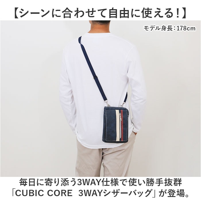 | 商品説明 | 【シーンに合わせて自由に使える!】毎日に寄り添う3WAY仕様で使い勝手抜群「CUBIC CORE 3WAYシザーバッグ」が登場。【3通りのスタイルで楽しめる】背面のループ、カラビナ、取り外し可能なショルダーベルト付き。3通りに使えるマルチなバッグ【収納力もうれしい味方】スマホやお財布がすっきり収まる縦型デザイン。細かい仕分けが叶う便利なポケット設計。【上品な見た目とやさしい手ざわり】シボ感のある柔らかな合皮素材。縦に入ったラインがスタイルにカジュアルさをプラス。【使う人を選ばないデザイン】男女問わず使いやすい万能デザイン。選べるカラーで、仕事や旅行、ちょっとしたお出かけにも◎【ポケット仕様】内側:ファスナーポケット×1マグネットフラップ内側:オープンポケット×1、ファスナーポケット×1最前面:縦型ファスナーポケット××1 |
