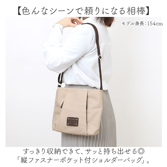 | 商品説明 | 【色んなシーンで頼りになる相棒】すっきり収納できて、サッと持ち出せる◎「縦ファスナーポケット付ショルダーバッグ」。【メインもサブ使いもお好みで】身軽にお出かけしたい時はこれ1つ。旅行やレジャーではサブバッグとしても使える万能バッグ!【両手が空いて移動がスマート】ショルダーの長さを調節して、肩掛けや斜め掛け!アクティブに動く日も快適。【開閉スムーズ、安心の天ファスナー】ガバっと開く天ファスナー式。ファスナーを閉じれば中身の飛び出しをガード。【A5対応ですっきりひとまとめ】A5や500mlペットボトルがぴったり。スリムながら、必要な物はしっかり収まるサイズ感。(※)ペットボトルなどが縦向きに収まる大きさですが、種類によっては開口部が閉まりにくい可能性があります。【サクッと取り出せて迷子知らず】合計7つのポケットを配置。細々した物も、バッグの中で探す手間が不要。【使い心地軽やかでストレスフリー】体にかかる負担を軽減できる、軽量設計。長時間の移動もラクラク。【使う人を選ばないシンプルデザイン】幅広い世代の方が持ちやすい仕上がり。異素材を使った大きめのネームがアクセント。【選ぶのも楽しいバリエーション】ベーシックやコーデのポイントになる差し色をラインナップ。ギフトにもおすすめ!【ポケット仕様】内側:ファスナーポケット×1、オープンポケット×2前面:マグネットポケット×1最前面:縦ファスナーポケット×2背面:ファスナーポケット×1 |