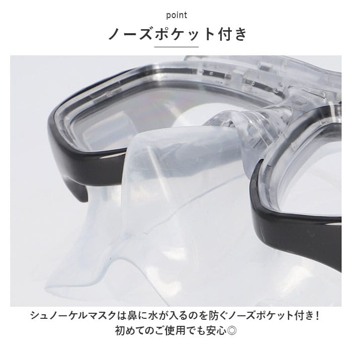 | 商品説明 | 海や川などでの水遊び、シュノーケリングに♪大人用スイムセット(13歳以上)が新登場!【臭いの少ないエラストマー製】マウスピースは装着時に気になる臭いが少ないエラストマー製◎【ノーズポケット付き】シュノーケルマスクは鼻に水が入るのを防ぐノーズポケット付き!初めてのご使用でも安心◎【長さ調節可能】ストラップはマスク両サイドのバックルベルトで簡単に長さ調節が可能!【丈夫なレンズ】レンズは耐衝撃性や耐久性、透明度に優れた素材のポリカーボネート製。【快適なフィット感】顔に触れるマスク部分は柔らかく、顔にピッタリフィットして水の侵入を防いでくれる!【選べるカラー】シンプルなデザインとカラー展開。ユニセックスで使えるアイテム。 |