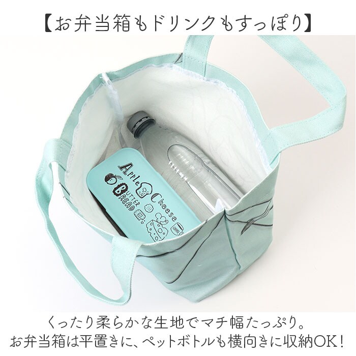 | 商品説明 | 【毎日のお出掛けに連れてって♪】お気に入りのキャラクターたちがランチタイムを楽しく彩る♪「キャラクター 帆布ランチトート」【手に優しく馴染むコットン素材】素朴なコットンキャンバスに、大人気キャラのプリントをカラフルにあしらったほのぼのデザイン。※持ち手ハンドルのみ、ポリエステル素材を使用しています。【お弁当箱もドリンクもすっぽり】くったり柔らかな生地でマチ幅たっぷり。お弁当箱は平置きに、ペットボトルも横向きに収納OK!【ご家庭でカンタンお洗濯♪】気軽にお手入れができるコットン素材なので、優しく手洗いすることでいつでも清潔さをキープ。※洗濯機・乾燥機のご使用はお避けください。【ちょっとそこまでのお出掛けに】ランチバッグに見えない可愛らしいルックスで、ちょっとしたお出掛け用のミニバッグにも最適。【カバンからパッと取り出せる】折りたたんでカバンに忍ばせておけば、お仕事帰りのちょこっと買い用のミニエコバッグに便利!【大人気キャラクターが勢揃い!】ランチを囲む人が自然に笑顔になる♪PEANUTSなど賑やかなキャラクターの絵柄をラインナップ。 |