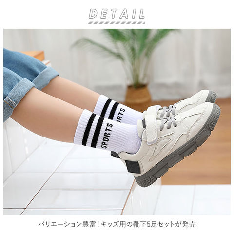 | 商品説明 | バリエーション豊富!キッズ用の靴下5足セットが発売。お肌に優しく、伸縮性のある素材を使用。一般的な長さで、使い勝手の良いクルー丈。毎日の登園・通学用に何枚あっても嬉しい♪14cm~26cmサイズに対応。親子でお揃いにしてもOK! |