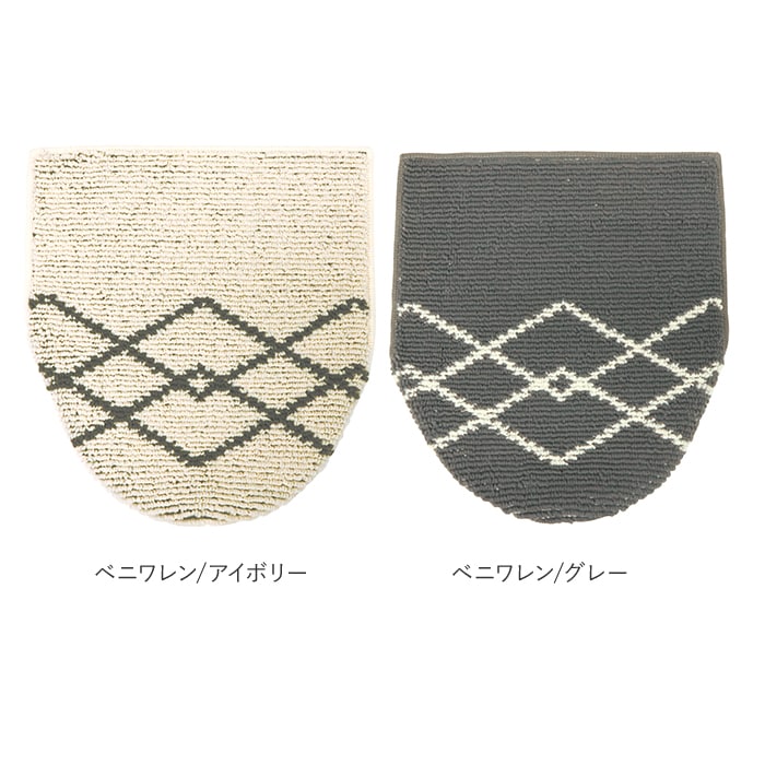 | 注意点 | 本品は衛生の問題上、サイズが合わなかった、イメージ違いなどの理由での交換返品を受け付けておりません。予めご了承ください。ドラム式洗濯機でのお洗濯は、機種によりご使用になれません。洗濯機の取扱い説明書の「ご使用上のご注意」をよくご覧ください。最初の2~3回はムダ毛が抜けたり多少脱色することがありますので、他の洗濯物と別にお洗い下さい。お洗濯の際は、ぬるま湯で家庭用洗剤をお使いください。裏をたたいてホコリを出してからお洗い下さい。洗濯機で丸洗いする際は、必ず吸盤を外し、洗濯ネットに入れてお洗い下さい。塩素系漂白剤は、ご使用にならないで下さい。型崩れを防ぐため、形を整えて日陰で吊り干しにしてください。乾燥機(タンブル乾燥)、アイロンのご使用はお避け下さい。ドライクリーニングはお避け下さい。ご使用されるトイレのフタのサイズをご確認ください。開閉センサーが付いている便器にカバーを取り付けますと、センサーがカバーで隠れ、自動開閉しない場合があります。お買い求めの際はセンサーの位置をご確認ください。また、機種によってはカバーの重量で自動開閉しない場合がありますので、ご注意ください。カメラやモニターの性質により、画像と実物の色の違いがある場合がございますのでご理解願います。 |