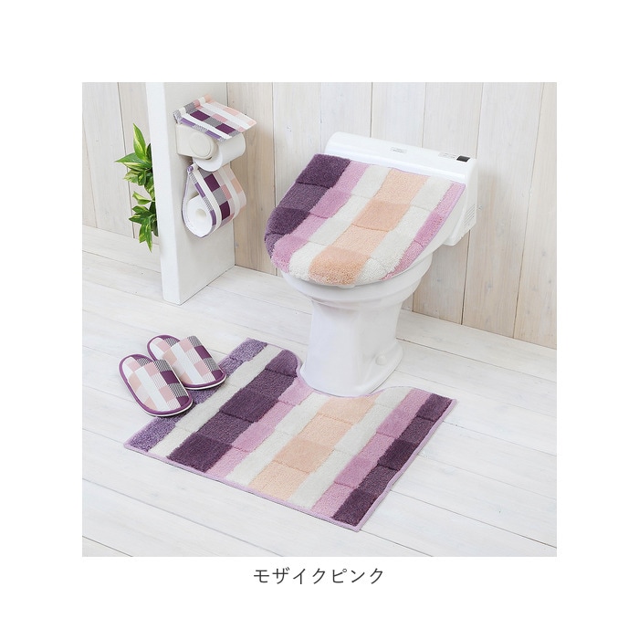 ヨコズナ 足元マット&兼用フタカバーセット【モザイクピンク】