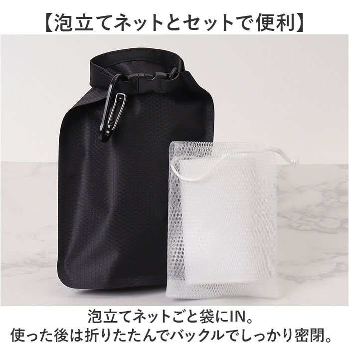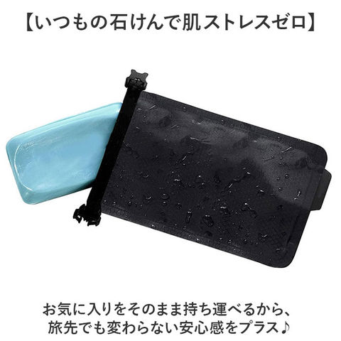 | 商品説明 | 【石けん派の旅支度にぴったり♪】お気に入りの石けんとどこへでも一緒に。「石けん収納袋」が登場。【いつもの石鹸をスマートに持ち運び】固形石けんがコンパクトに収まるから、スーツケースの中も洗面台もスッキリ。【音がしないからストレスゼロ】プラスチック製のケースと違い、音が気にならないやわらかな素材。移動中も静かで快適。【旅行やスパにぴったりの軽さ】液体と違って軽くて漏れる心配がないから飛行機にも安心。荷物がかさばらず準備もラクラク。【泡立てネットとセットで便利】泡立てネットごと袋にIN。使った後は折りたたんでバックルでしっかり密閉。【撥水素材&カラビナ付き】濡れてもすぐ拭ける撥水生地。スパバッグやリュックにパチッと装着OK。【いつもの石けんで肌ストレスゼロ】お気に入りをそのまま持ち運べるから、旅先でも変わらない安心感をプラス♪ |