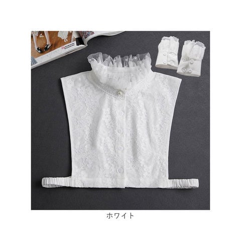 | 商品説明 | 【重ね着でおしゃれ度UP】簡単コーデ力アップのつけ襟&つけ袖2点セット。【華やかさをプラス】セーターやパーカーに合わせるだけで印象が、がらりとチェンジ!【上品なレースデザイン】女性らしいフリルで大人可愛い印象をプラス♪【サイズ調節可能】付け袖はボタンでサイズ調節ができる〇【カジュアルに使える】シンプルカラーでどんなコーデにも合わせやすい◎ |