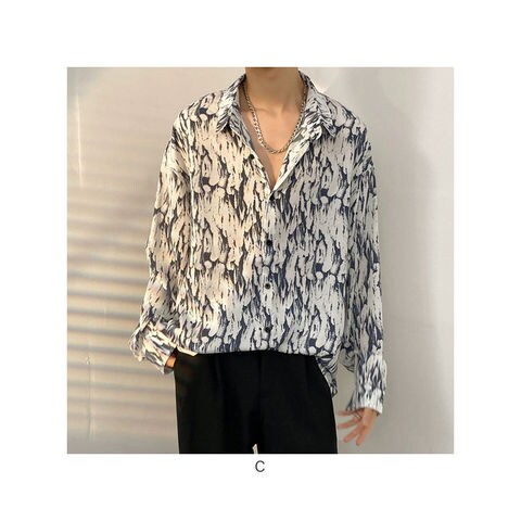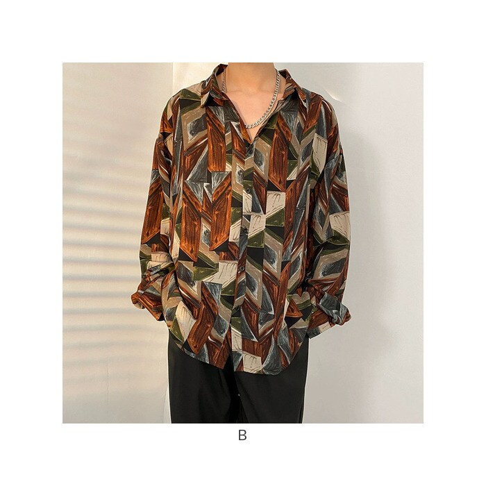 男女兼用長袖アロハシャツ カジュアルシャツ【B】【3XL】