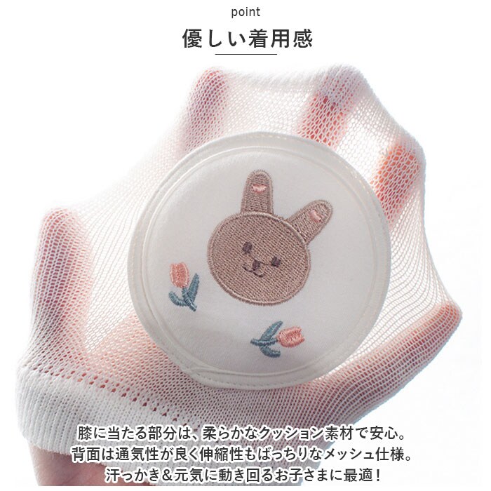 | 商品説明 | ベビーの膝を優しく守る♪ナチュラル可愛い膝パッドが新登場。【ハイハイや歩き始めの赤ちゃんに】慣れない動きで膝にかかる負担を軽減してくれるパッド。摩擦による膝のガサガサ感や、転倒などによるケガを予防◎【優しい着用感】膝に当たる部分は、柔らかなクッション素材で安心。背面は通気性が良く伸縮性もばっちりなメッシュ仕様。汗っかき&元気に動き回るお子さまに最適!【キュートな刺繍デザインをラインナップ】アニマルやフラワーなど、豊富なバリエーション♪付けている姿もとっても可愛く、プレゼントにもおすすめ。 |