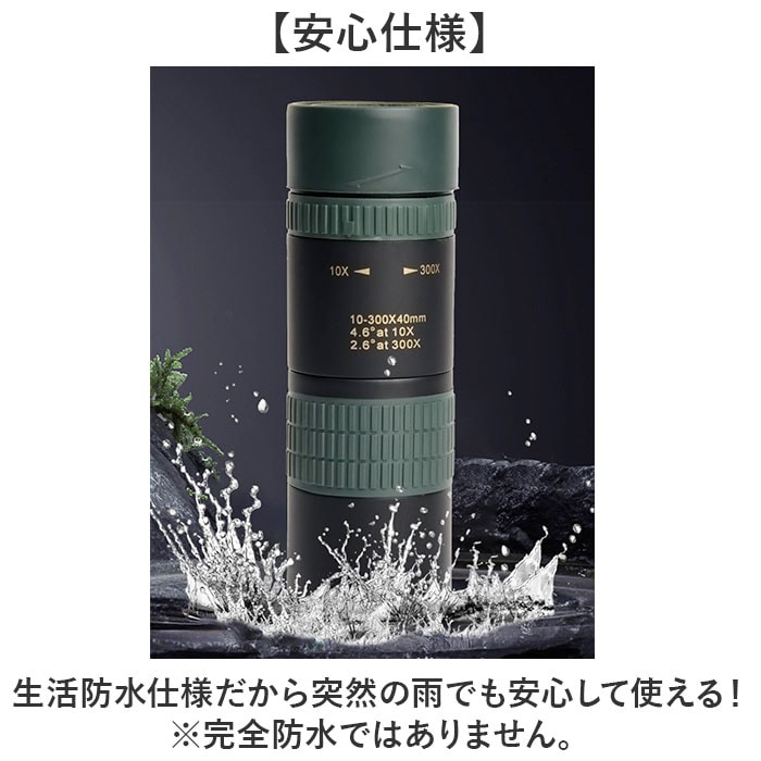 | 商品説明 | 【遠くをもっと近くに】スマホで撮る、超高倍率の世界。三脚付きで安定撮影も叶う単眼鏡。【10倍から1000倍まで】倍率調整が自在だから、見たい距離に合わせて細かく設定できる◎【スマホ取付も簡単】専用の固定器具でスマートフォンにしっかり装着、遠距離の被写体もしっかり撮影できる♪【三脚でブレ知らず】付属の三脚を使えば長時間の観察や撮影時も手ブレを気にせず快適に使える〇【クリアな視界を実現】多層コーティングレンズとBAK4光学プリズムで、鮮明でクリアな視界が広がる♪【安心仕様】生活防水仕様だから突然の雨でも安心して使える!※完全防水ではありません。【持ち運びに便利】専用ケース付きで収納も楽々、持ち運びしやすい。 |