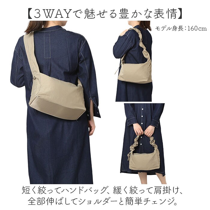 | 商品説明 | 【お好みでクシュっとアレンジ☆】嬉しい3WAY!持つだけで旬コーデが完成。「ショルダーバッグ ギャザーハンドル」が登場。【ギャザーありもなしも自由自在!】アジャスター紐を引っ張ると、クシュクシュっとギャザーがうまれる!お好みでアレンジ自在。【3WAYで魅せる豊かな表情】短く絞ってハンドバッグ、緩く絞って肩掛け、全部伸ばしてショルダーと簡単チェンジ。【くたっとラフな感じが今っぽい】全体的にシワ感のあるくたっとした生地。いつものカジュアルスタイルにプラスして今っぽく♪【ザクザク入る収納力が自慢】底板入りの作りで、必要な荷物をしっかり収納。毎日使いにちょうどいい、たっぷり容量◎【ポケットつきが嬉しいポイント】メインには小物を収納できる、ポケットを3つ搭載。小物の迷子を解決してくれる。【合わせやすい定番カラー☆】お洋服に馴染む、定番カラーのラインナップ。くすみ感が可愛らしい! |