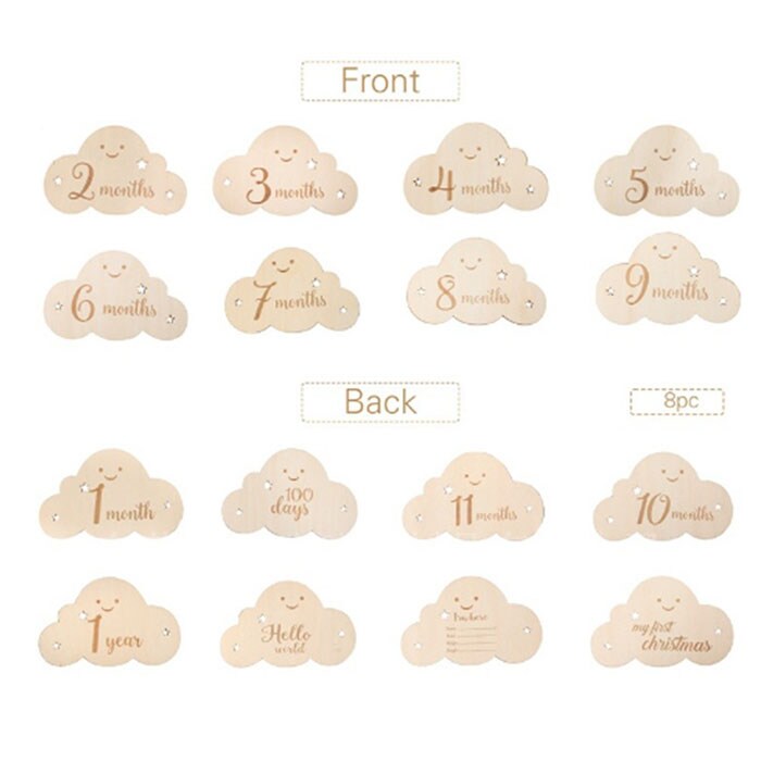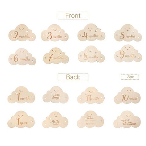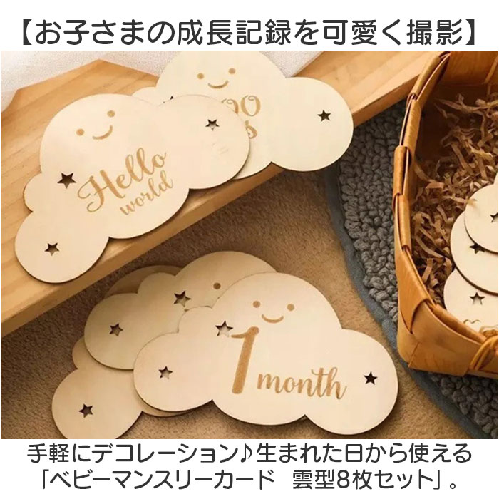 ベビーマンスリーカード 木製レターバナー 雲形 8枚セット 【雲形】
