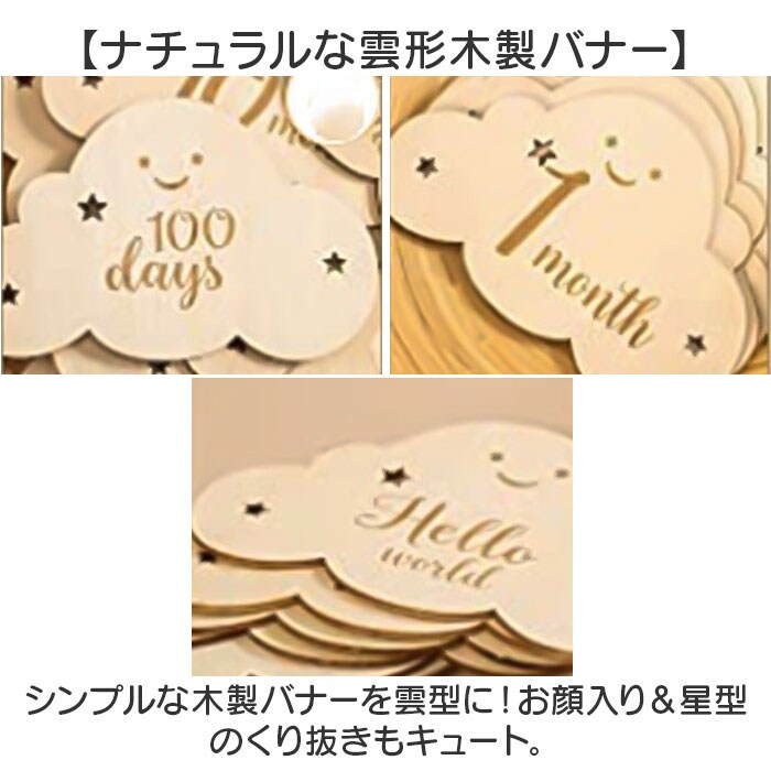 | 商品名 | ベビーマンスリーカード 木製レターバナー 雲形 8枚セット |