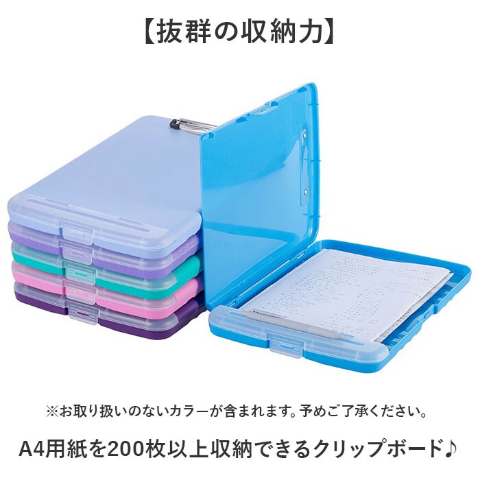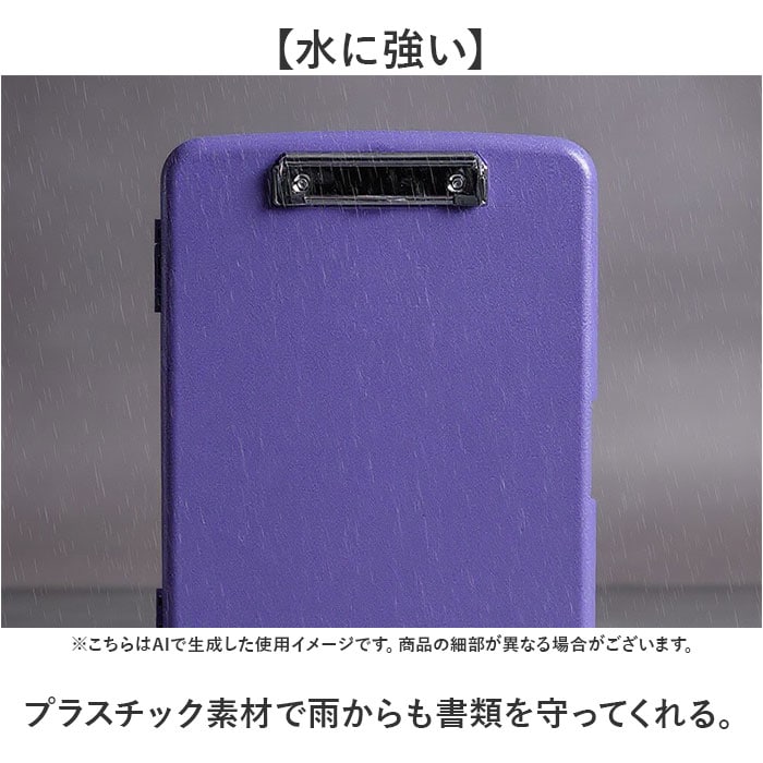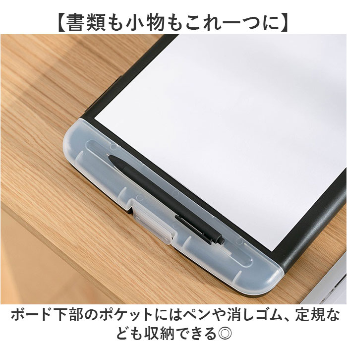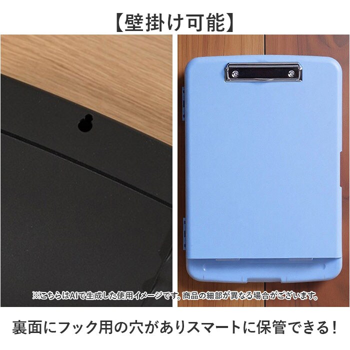 | 商品説明 | 【抜群の収納力】A4用紙を200枚以上収納できるクリップボード♪【書類も小物もこれ一つに】ボード下部のポケットにはペンや消しゴム、定規なども収納できる◎【持ち運びやすい形状】ボードの裏にある溝は、指がちょうどフィットするデザイン。【水に強い】プラスチック素材で雨からも書類を守ってくれる。【壁掛け可能】裏面にフック用の穴がありスマートに保管できる! |