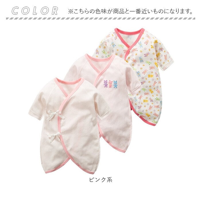 新生児肌着 3枚セット ロンパース 綿100%【ピンク系】