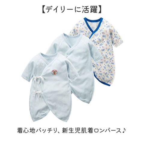 | 商品説明 | 【デイリーに活躍】着心地バッチリ、新生児肌着ロンパース♪【合わせ紐デザイン】赤ちゃんに合わせて紐で調整出来るから、いつでも心地よくフィット◎【嬉しい3枚組】可愛い柄違いの3枚セットで、毎日のお着替えやお洗濯にママも助かる!【元気いっぱい動ける】程よいストレッチ性で、足元はボタンで留められるから元気に動いてもはだけにくい〇【デリケートな肌に安心】赤ちゃんの肌に優しいコットン100%の柔らかな着心地。 |