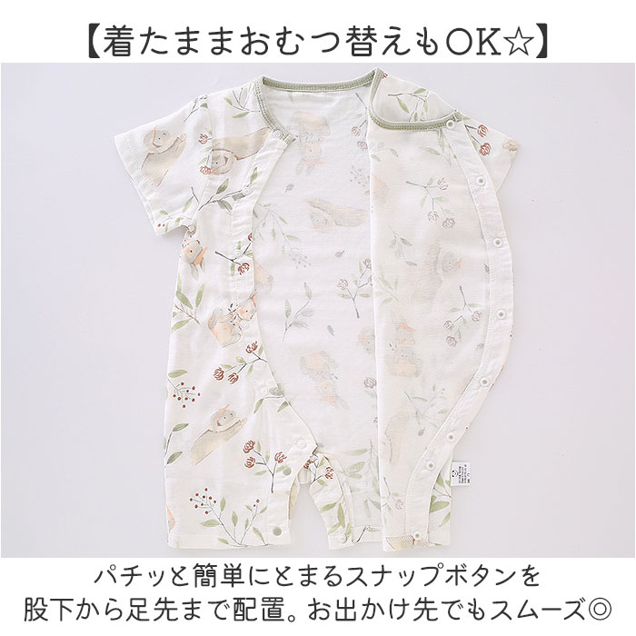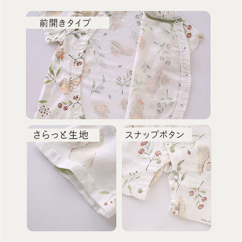 | 商品説明 | 【ふわりと優しいナチュラルデザイン】ライトな着心地が気持ちいい♪「ベビーロンパース」が登場。【サラッと軽い着心地が魅力】サラっとやわらか、ガーゼのような生地を採用。通気性がよく軽い、ストレスフリーの着心地。【男の子も女の子も似合うデザイン】ふわりと優しいタッチのナチュラルデザインがおしゃれ。お気に入りの1枚がきっと見つかる♪【着たままおむつ替えもOK☆】パチッと簡単にとまるスナップボタンを股下から足先まで配置。お出かけ先でもスムーズ◎【お祝いなどのギフトにオススメ】おしゃれでたくさん使えるアイテムなので、出産祝いなどにぴったり☆きっと喜ばれる! |