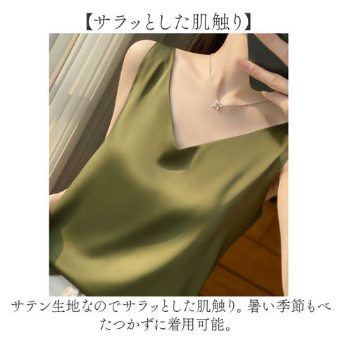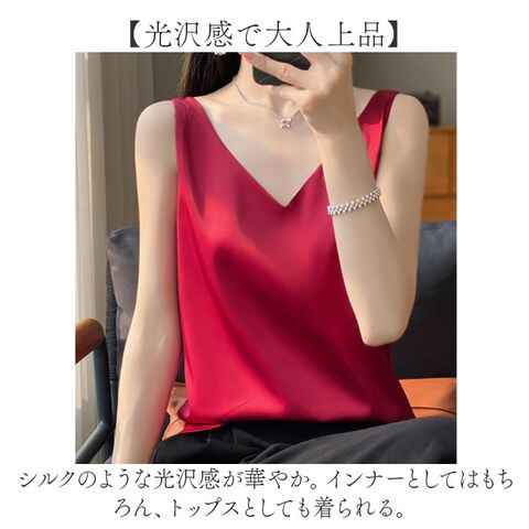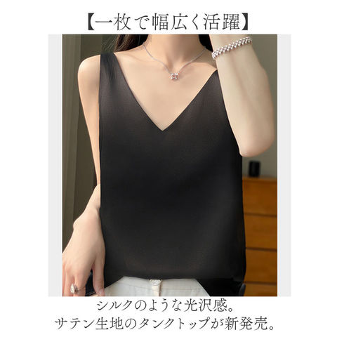 | 商品説明 | 【一枚で幅広く活躍】シルクのような光沢感☆サテン生地のタンクトップが新発売。【光沢感で大人上品】シルクのような光沢感が華やか。インナーとしてはもちろん、トップスとしても着られる。【サラッとした肌触り】サテン生地なのでサラッとした肌触り。暑い季節もべたつかずに着用可能。【様々なコーデとマッチ】普段使いはもちろん、ジャケットやボレロと合わせてフォーマルに着こなせるのもGOOD。【デコルテやアクセを綺麗魅せ】首元がすっきり見えるVネック仕様で、デコルテラインやアクセサリーが映える♪【豊富なカラーバリエーション】ベーシックカラーから華やかなカラーまで色違いで揃えたくなるカラーバリエーション。 |