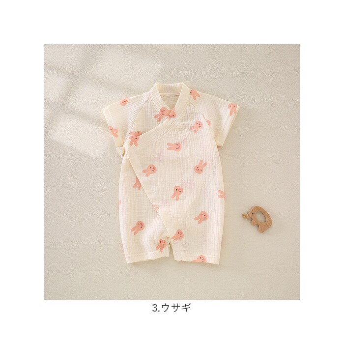 ベビー甚平ロンパース コットンガーゼ【3.ウサギ】【80cm】