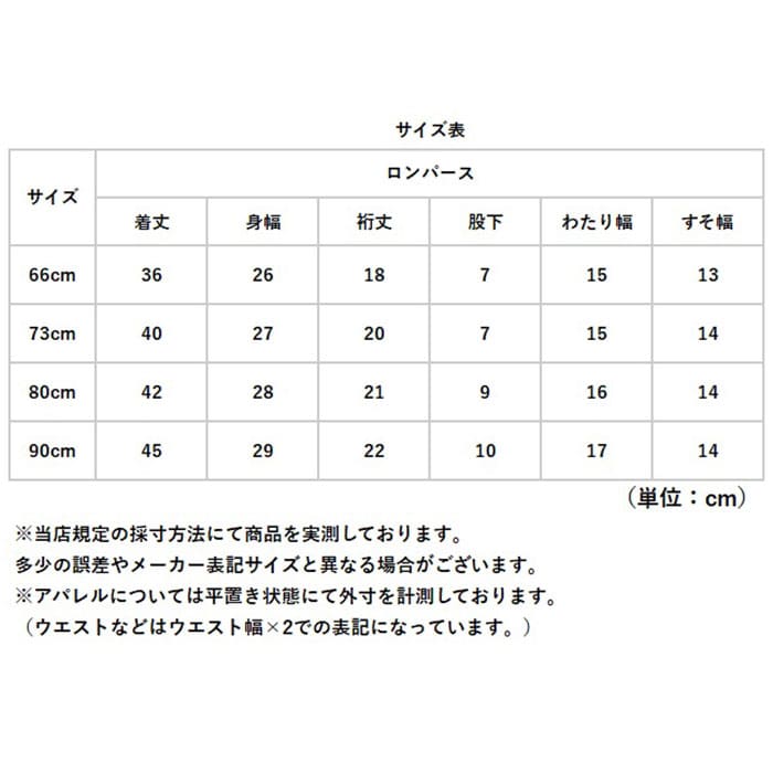 | サイズ | [ベビー] ・66cm ・73cm ・80cm ・90cm ※サイズについて詳細は、商品画像の中にあるサイズ表をご覧くださいませ。 |