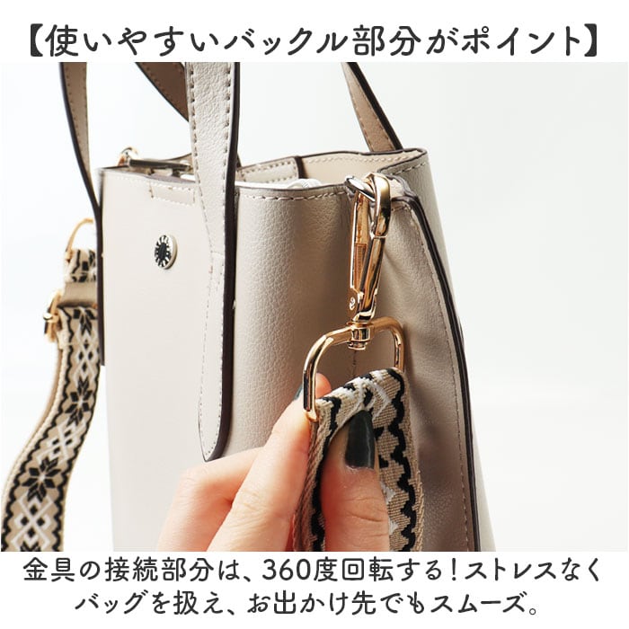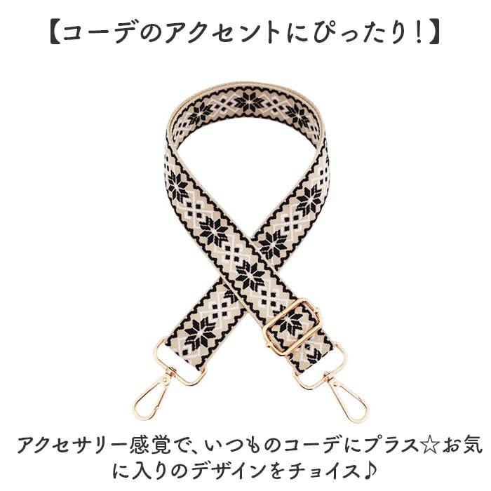 | 商品説明 | 【いつものバッグにつけるだけ☆】バッグをイメチェンできる、優れモノ!「ショルダーストラップ」が登場。【お手持ちのバッグにつけるだけでOK】いつものバッグにカチッと着ければ、簡単にイメチェンができちゃう!おしゃれアイテム☆【使いやすいバックル部分がポイント】金具の接続部分は、360度回転する!ストレスなくバッグを扱え、お出かけ先でもスムーズ。【食い込みにくい&身体にフィット】荷物の重さを分散する、幅広設計のストラップ。お好みで長さ調節できるから持ちやすさUP◎【ゴールドパーツで大人っぽく♪】金具部分は高見えするゴールドを採用。大人にも似合う上品カジュアルスタイルがGOOD。【コーデのアクセントにぴったり!】アクセサリー感覚で、いつものコーデにプラス☆お気に入りのデザインをチョイス♪ |