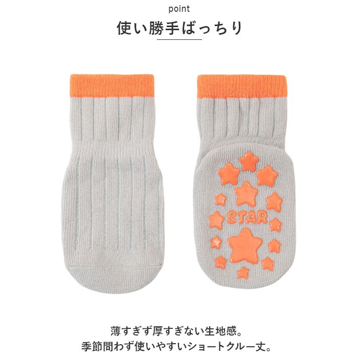 | 商品説明 | デイリー使いにぴったり!キッズソックス5足セットが登場。【使い勝手ばっちり】薄すぎず厚すぎない生地感。季節問わず使いやすいショートクルー丈。【履き心地快適】柔らかく、お肌に優しい素材を使用。伸縮性もあり、締めつけ感なく履けるのが嬉しい♪【滑りにくい安心設計】底面にキュートな絵柄デザインの滑り止め付き。元気に動き回るお子さまも安心。(※カラーにより滑り止めのデザインが異なります。)【洗い替えに便利】色違いの5足セット。気分やコーデに合わせて選べて、洗濯の心配も不要◎ |