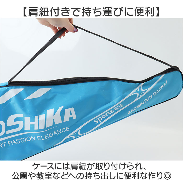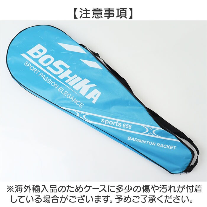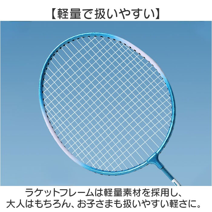 | 商品説明 | 【お子さまの遊び道具や練習用に】軽量タイプで大人から子供まで使いやすい☆バドミントンラケットが新発売。【届いてすぐ遊べるセット商品】ラケット2本とシャトル、ケースのセット。届いてからすぐ遊べる♪※【無くしても安心】シャトルは3個付属しており、遠くに飛んでしまったり無くしても安心◎【軽量で扱いやすい】ラケットフレームは軽量素材を採用し、大人はもちろん、お子さまも扱いやすい軽さに。【肩紐付きで持ち運びに便利】ケースには肩紐が取り付けられ、公園や教室などへの持ち出しに便利な作り◎【注意事項】※ 海外輸入品のためケースに多少の傷や汚れが付着している場合がございます。予めご了承ください。 |