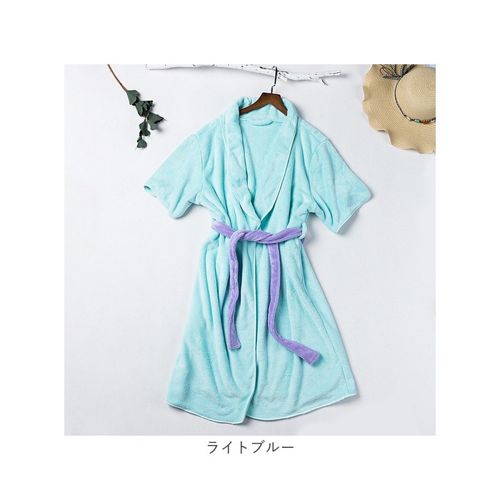 バスローブ 吸水マイクロファイバー ルームウェア【ライトブルー】