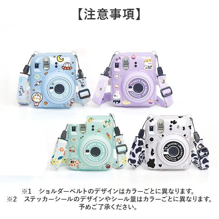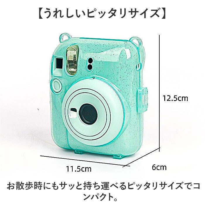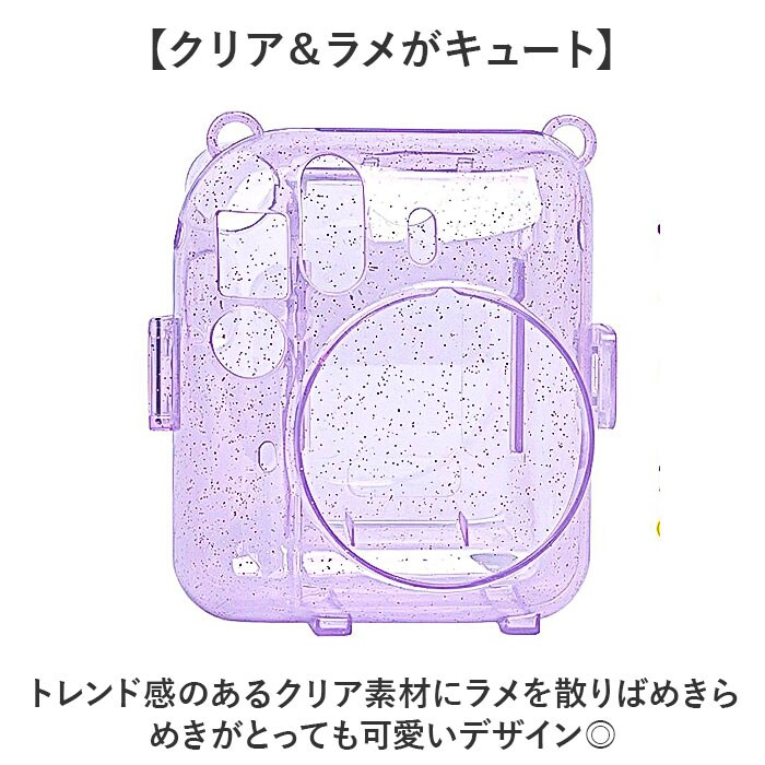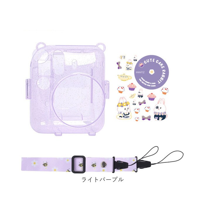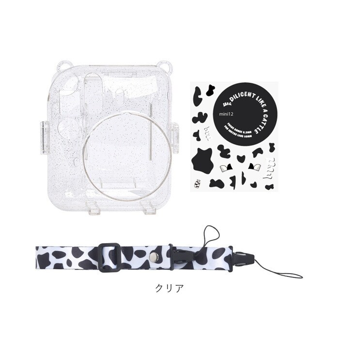 | 商品説明 | 【可愛くデコレーションできる】instax mini12専用インスタントカメラ クリアケースが新発売。【クリア&ラメがキュート】トレンド感のあるクリア素材にラメを散りばめきらめきがとっても可愛いデザイン◎【ハード素材でしっかり守る】ケースはハード素材で汚れや傷などから大切なカメラをしっかり守る。【ケースを付けたまま操作可能】レンズやライトなど所定位置にホールを開けており、カバーを付けたまま撮影と印刷が可能。【ストラップ付で持ち運び楽チン】長さ調節ができるショルダーストラップ付属。シーンに合わせて斜め掛けもOK☆※1【うれしいピッタリサイズ】お散歩時にもサッと持ち運べるピッタリサイズでコンパクト。【ケースやカメラに貼れるシール】ケースやカメラに貼れるステッカーシールを付属。より可愛くデコレーションできる♪※2【注意事項】※1 ショルダーベルトのデザインはカラーごとに異なります。予めご了承ください。※2 ステッカーシールのデザインやシール量はカラーごとに異なります。予めご了承ください。 |