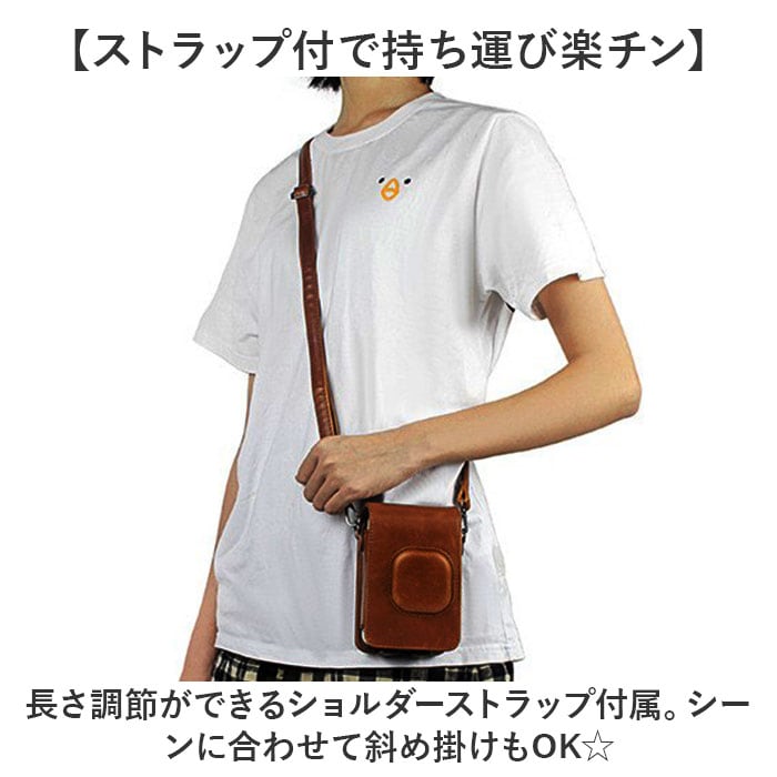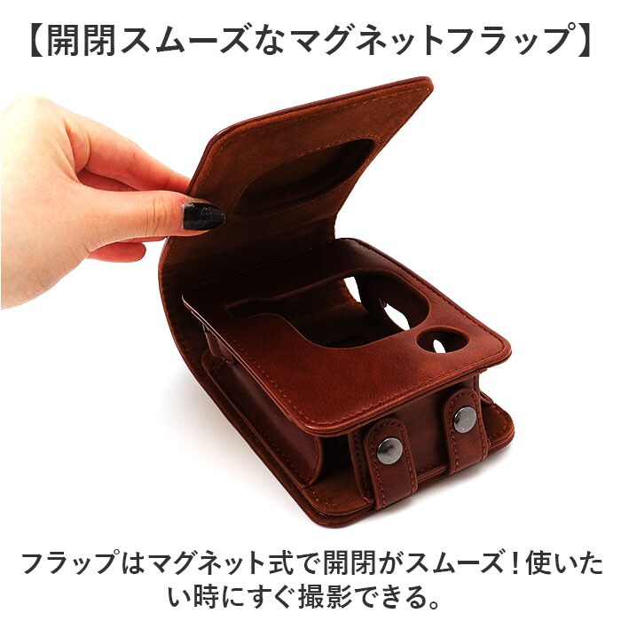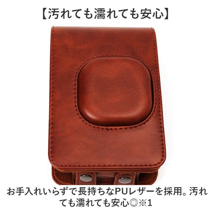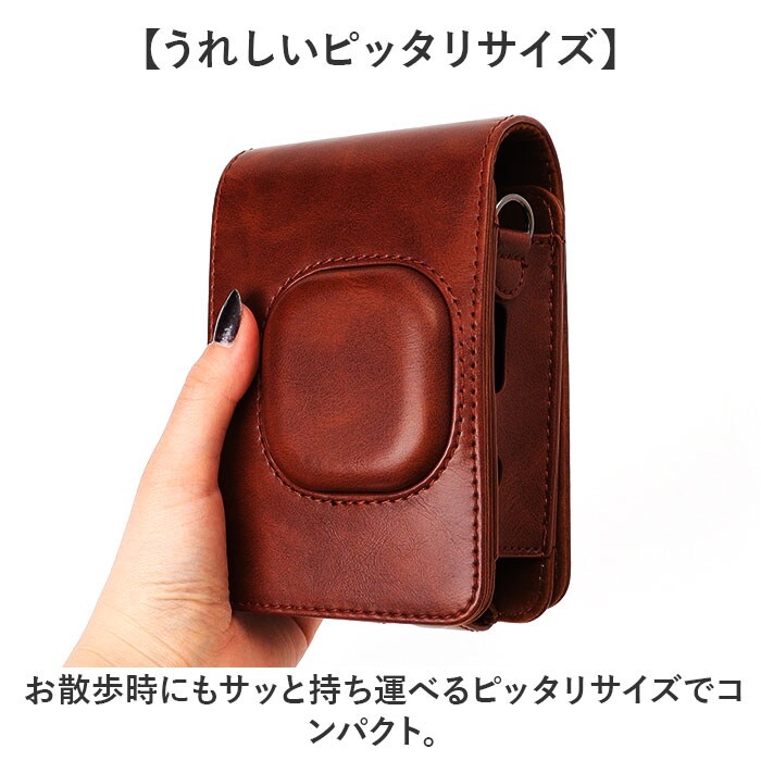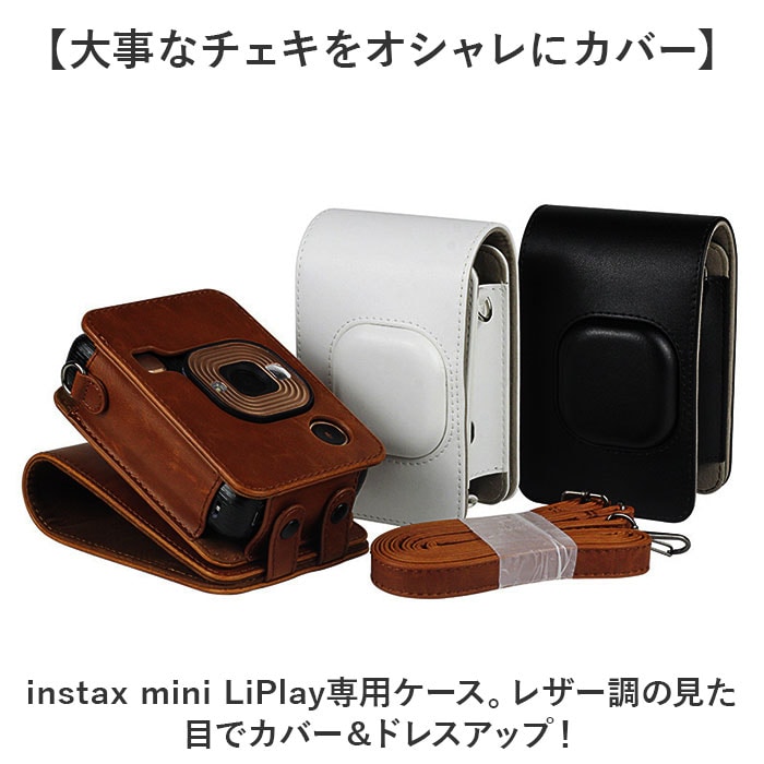| 商品説明 | 【大事なチェキをオシャレにカバー】instax mini LiPlay専用ケース。レザー調の見た目でカバー&ドレスアップ!【カバーを付けたまま撮影】レンズやライト位置にホールを開けており、カバーを付けたまま撮影可能。【ストラップ付で持ち運び楽チン】長さ調節ができるショルダーストラップ付属。シーンに合わせて斜め掛けもOK☆【うれしいピッタリサイズ】お散歩時にもサッと持ち運べるピッタリサイズでコンパクト。【汚れても濡れても安心】お手入れいらずで長持ちなPUレザーを採用。汚れても濡れても安心◎※1【開閉スムーズなマグネットフラップ】フラップはマグネット式で開閉がスムーズ!使いたい時にすぐ撮影できる。【シンプルで誰も使える】 装飾がなく、シンプルなレザー調の見た目。年代・性別問わず使えるのもポイント。【注意点】※1 はっ水機能はございません。汚れの種類によっては、落ちにくかったり、水分が長時間本体に触れる内部に侵入する場合がございます。 |