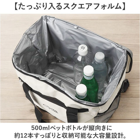| 商品説明 | 【デイリー使いやレジャーに】さまざまなシーンで大活躍♪「2WAY保冷保温クーラーボックス」【たっぷり入るスクエアフォルム】500mlペットボトルが縦向きに約12本すっぽりと収納可能な大容量設計。【開閉ラクラク】大きくコの字型に開くダブルファスナーで中身の出し入れがスムーズ。【保冷保温で一年中活躍】内側にPEVA素材採用で温かい物も冷たい物もしっかりキープ◎【サッとひと拭きで簡単キレイ】内側は撥水性があり、汚れや水滴が拭き取りやすくお手入れ簡単。【小物収納に便利】バッグの正面にはファスナーポケット、両側面にはメッシュポケット付き。【スタイル自在】ハンドルでそのまま手持ちに、取り外しのできるショルダーベルトを使えば肩に掛けて持ち運べる2WAY仕様。 |