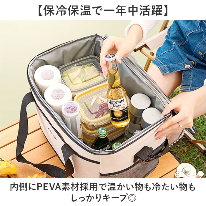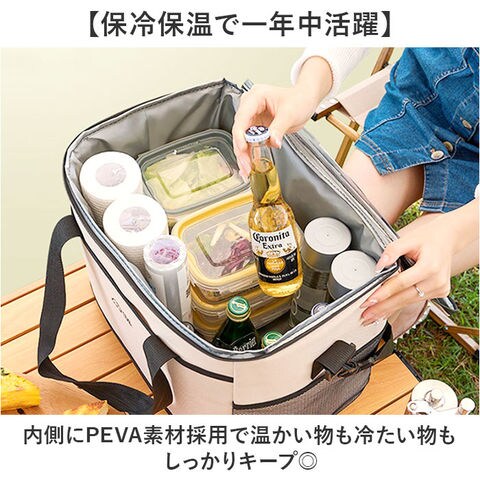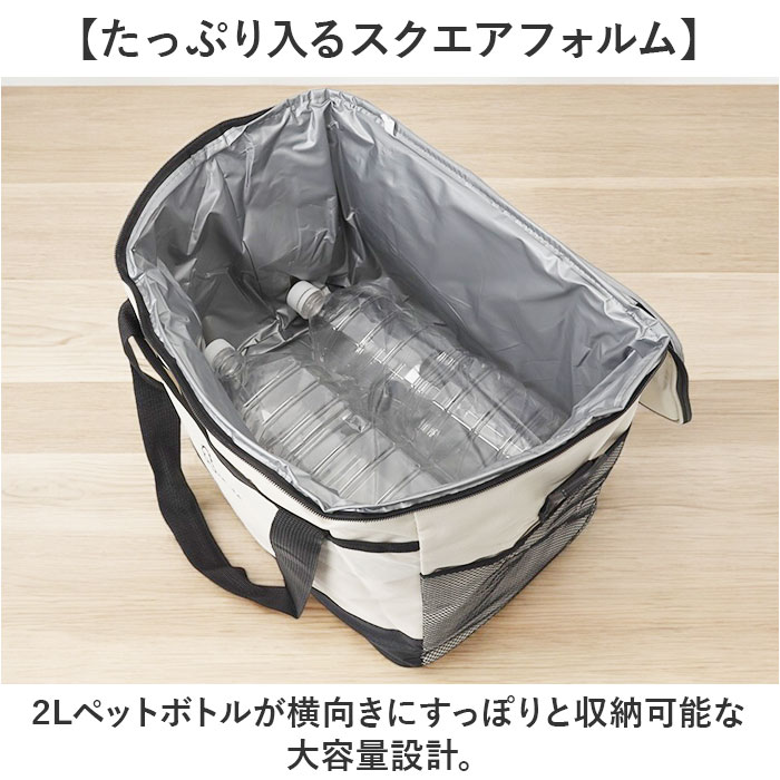| 商品説明 | 【デイリー使いやレジャーに】さまざまなシーンで大活躍♪「2WAY保冷保温クーラーボックス」【たっぷり入るスクエアフォルム】2Lペットボトルが横向きにすっぽりと収納可能な大容量設計。【開閉ラクラク】大きくコの字型に開くダブルファスナーで中身の出し入れがスムーズ。【保冷保温で一年中活躍】内側にPEVA素材採用で温かい物も冷たい物もしっかりキープ◎【サッとひと拭きで簡単キレイ】内側は撥水性があり、汚れや水滴が拭き取りやすくお手入れ簡単。【小物収納に便利】バッグの正面にはオープンポケット、両側面にはメッシュポケット付き。【スタイル自在】ハンドルでそのまま手持ちに、取り外しのできるショルダーベルトを使えば肩に掛けて持ち運べる2WAY仕様。 |