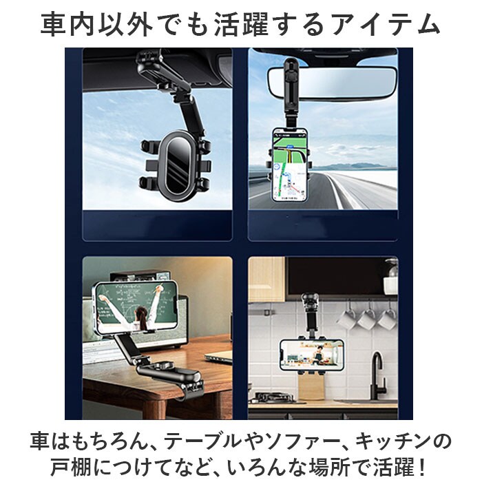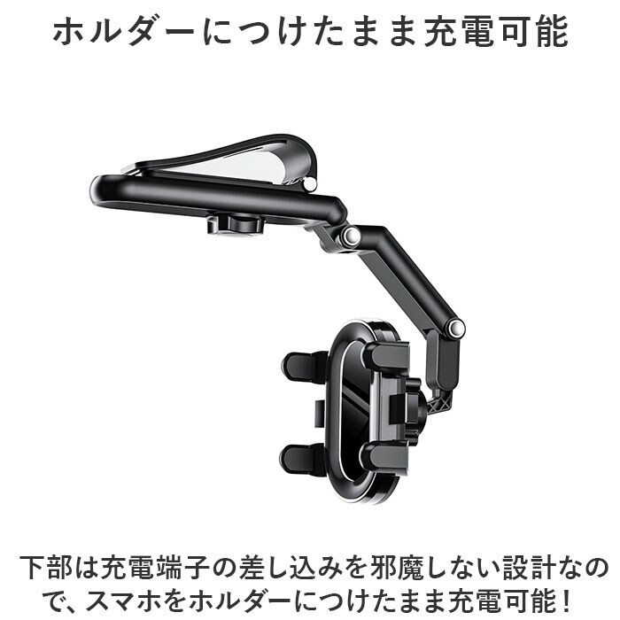 | 商品説明 | クルっと360度回転◎サッと差し込めばどこでも使える!「スマホホルダー 車載ホルダー」が登場!【どこでも使える簡単設置!】サンバイザーやバックミラーにサッと差し込むだけの簡単設置◎手軽に使えるのがポイント。【360度回転でお好みの角度に◎】ホルダーは360度回転できる!アームもそれぞれ可動域が広いので、お好みの角度に調節可能◎【ナビも動画鑑賞もラクラク♪】運転席でのナビ、助手席や後部座席、運転休憩時の動画鑑賞など、ハンズフリーで使えて便利☆【いろんなスマホに対応】ホルダーは、ボタンを押せば幅調節が可能。お持ちのスマホの幅に合わせてフィット!【ワンタッチでスマホを装着】ワンタッチリリースボタンを搭載しているので、スマホをワンタッチで装着できる!【ホルダーにつけたまま充電可能】下部は充電端子の差し込みを邪魔しない設計なので、スマホをホルダーにつけたまま充電可能!【車内以外でも活躍するアイテム】車はもちろん、テーブルやソファー、キッチンの戸棚につけてなど、いろんな場所で活躍!【使わない時はコンパクトに収納】アームを曲げてコンパクトにたためるので、不使用時でも視界の邪魔にならない◎ |