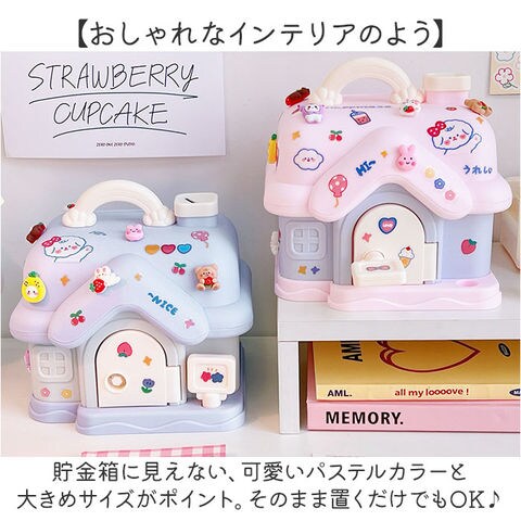 | 商品説明 | 【かわいいお家の貯金箱☆】お子様から大人まで、みんなで楽しく貯金!「貯金箱」が登場。【おしゃれなインテリアのよう】貯金箱に見えない、可愛いパステルカラーと大きめサイズがポイント。そのまま置くだけでもOK♪【開けるのが楽しい鍵つきタイプ】扉の鍵穴に鍵を差し込んで、クルっと回せば簡単オープン!お子様も扱いやすい楽しい仕掛け。【紙幣専用の入口をご用意】コインと紙幣の入口をそれぞれご用意。紙幣は折り曲げずに収納できる!【たくさん貯まるBIGサイズ】毎日ひとりでコツコツと、家族や友達と一緒に貯金♪など、いろんな使い方が楽しめる!【知育用のおもちゃにもオススメ】鍵を開けて、コインを入れて…指先をたくさん使うから、お子様の知育玩具としても大活躍☆【持ち運びがしやすい取手つき】お部屋の移動など、持ち運びに便利な取手つき。たくさん貯まって重たくなっても大丈夫! |