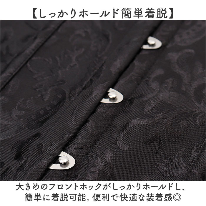 | 商品説明 | 【理想のくびれを手に入れる!】理想のくびれを実現するために特化したアイテム。美しいボディラインを手に入れて自信を♪【14本のボーンが強力ボディメイク】14本のボーンがしっかりとサポートし、強力にボディメイク。美しいシルエットをキープ☆【背面レースアップがオシャレ】ロココ調の生地模様と背面のレースアップがオシャレ。華やかなデザインで気分もUP♪【しっかりホールド簡単着脱】大きめのフロントホックがしっかりホールドし、簡単に着脱可能。便利で快適な装着感◎【当て布付きで背後もばっちり★】当て布が付いているので、背面を緩めても肌が見えず安心。スタイルをしっかりカバー★【サテン地で手触りも◎】サテン地の滑らかな手触りが魅力。肌に優しく快適な着心地を提供☆【セクシーコーデも出来る♪】同じ生地のTバックショーツがセットで付いてきて、セクシーなコーディネートを楽しめる。特別な日にぴったり♪ |