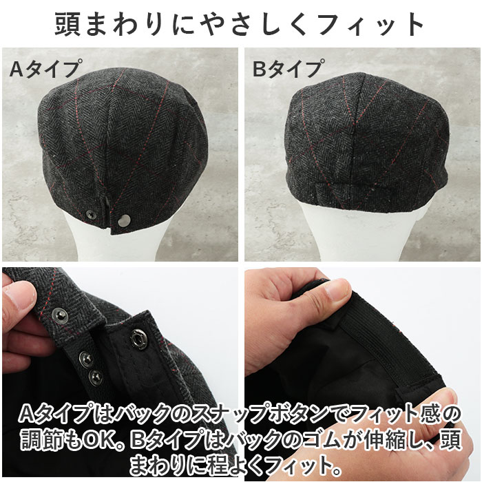 | 商品説明 | スタイリッシュで大人な雰囲気のハンチングが発売。【温かみのあるウール混紡素材】ナチュラルで温かみのあるウールの混紡素材を使用しているので、寒い時季も快適。【型崩れしにくい丈夫なつくり】ツバ部分は丈夫なつくりで型崩れしにくいのもポイント。【頭まわりにやさしくフィット】・Aタイプはバックのスナップボタンでフィット感の調節もOK。・Bタイプはバックのゴムが伸縮し、頭まわりに程よくフィット。【ゴルフシーンにもマッチ】クラシカルなデザインはゴルフなどのスポーツシーンにもマッチ。【スッキリシルエットで幅広い年代に】落ち着きのあるヘリンボーン柄とスッキリしたシルエット。幅広い年代に使用できるのでギフトにもおすすめ。 |